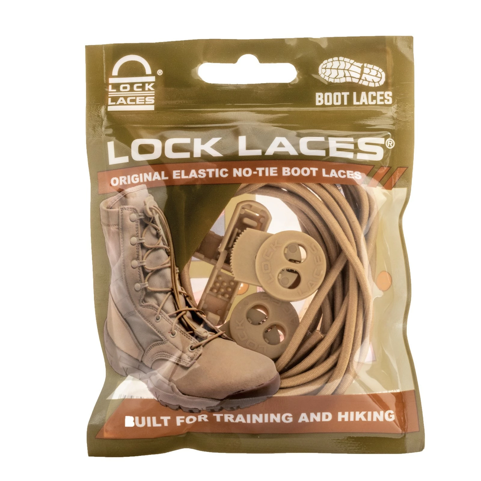 Lock Laces, Tan No Tie Laces. Tan Boot Laces are great for military and first responder style boots, construction boots, hiking boots and so much more.