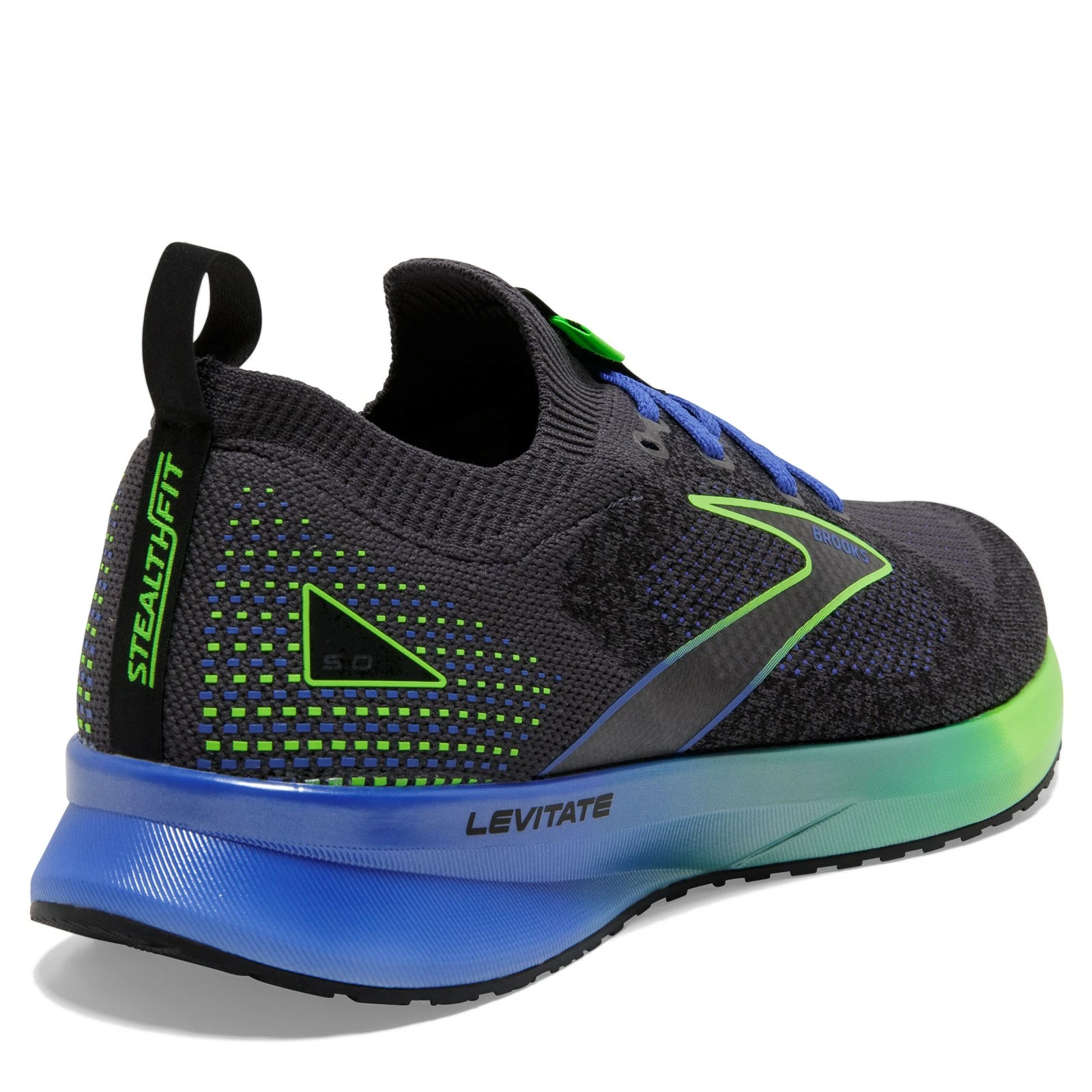 Men’s Brooks, Levitate Stealthfit 5 Running Shoe. You’ll love the StealthFit design of this running sneaker with its close fitting stretch and compression upper. The men’s Levitate 5 has an improved fit and increased breathability to go with the super springy feel, making it a more cushioned and forgiving ride.