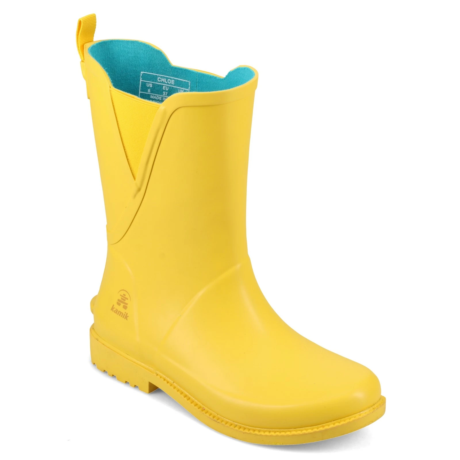 Women’s Kamik, Chloe Rain Boot. This cute rain boot offers more coverage than the Lo boot style and will keep you feeling dry and comfy in inclement weather. The removable molded EVA footbed will provide underfoot comfort as you walk through sidewalk puddles.