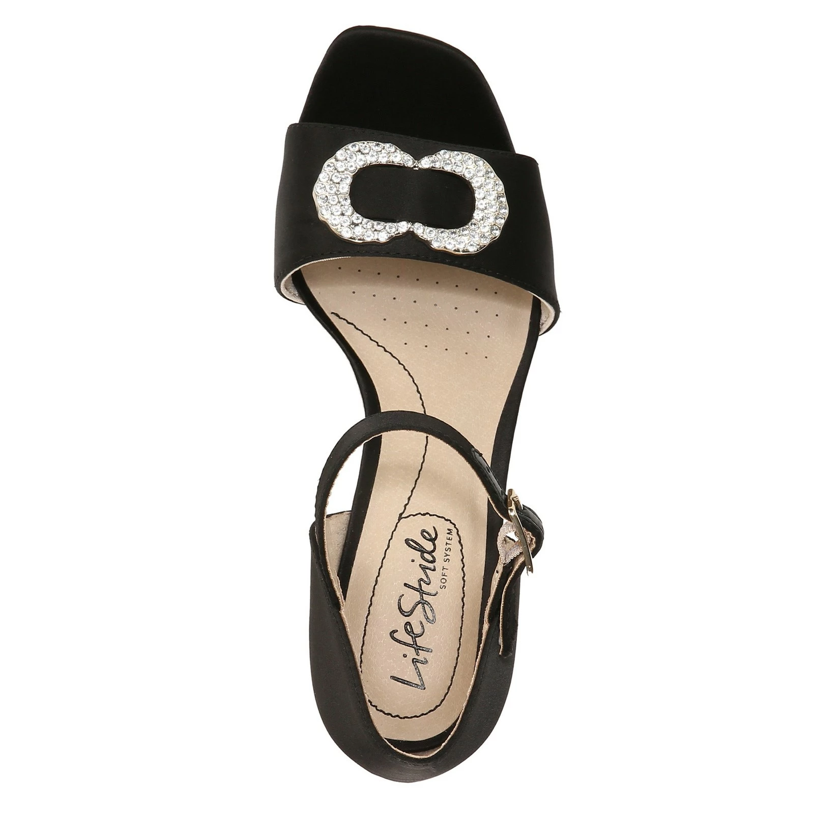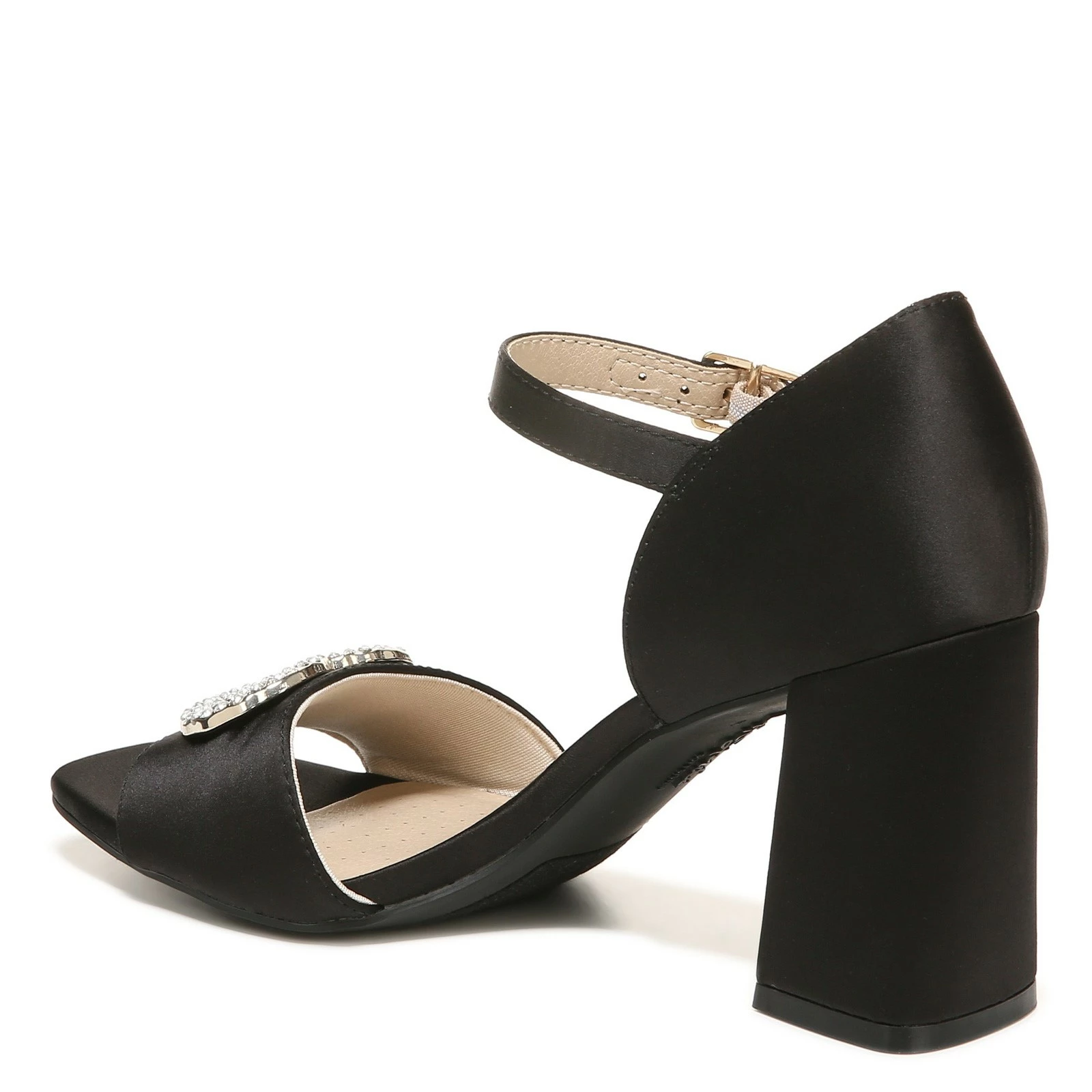 - Satin fabric uppers with rhinestone decoration