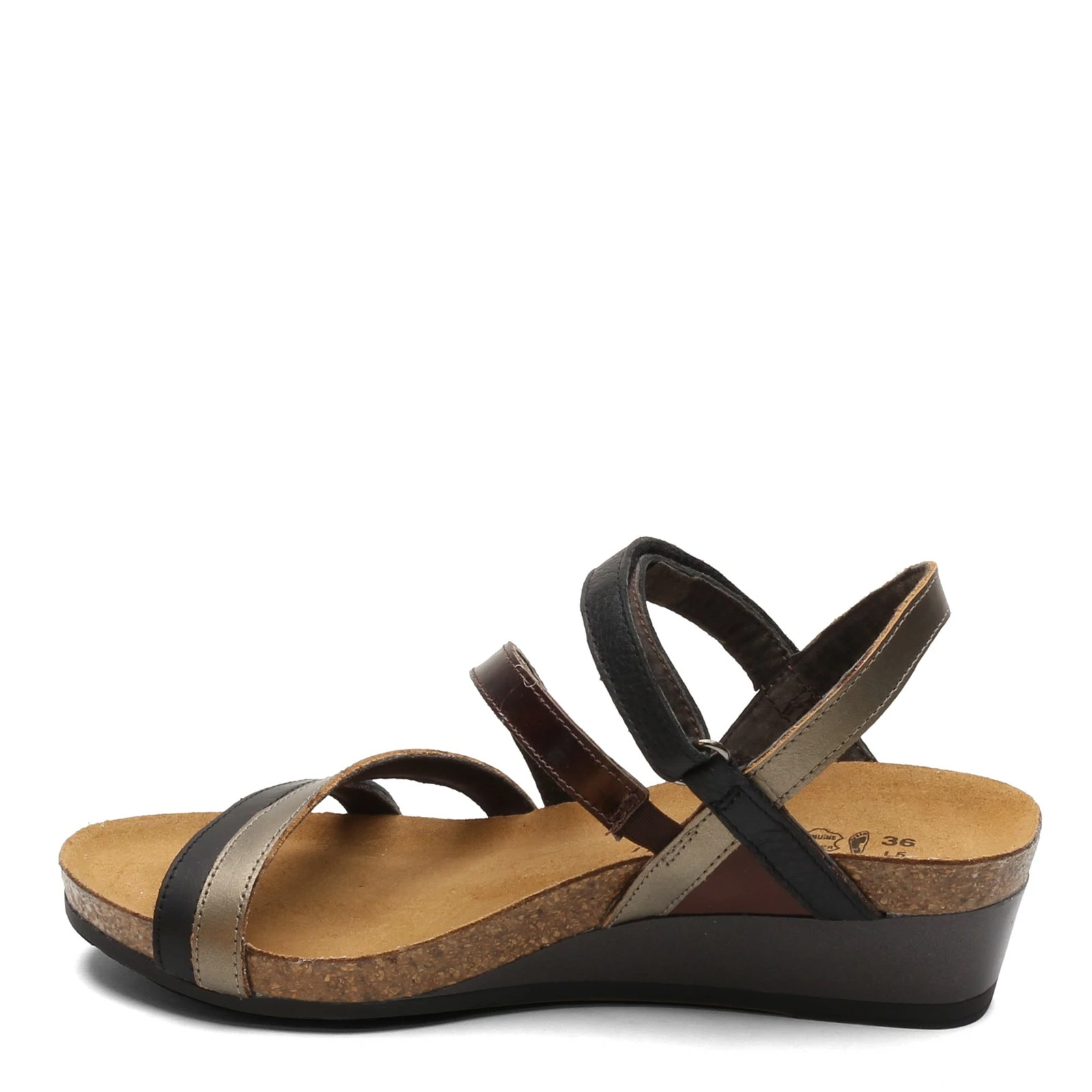 Women’s Naot, Hero Sandal. Feel comfortable and look stylish in this casual low wedge sandal. The soft strappy leather upper is flattering and will look nice with dressy or casual outfits.