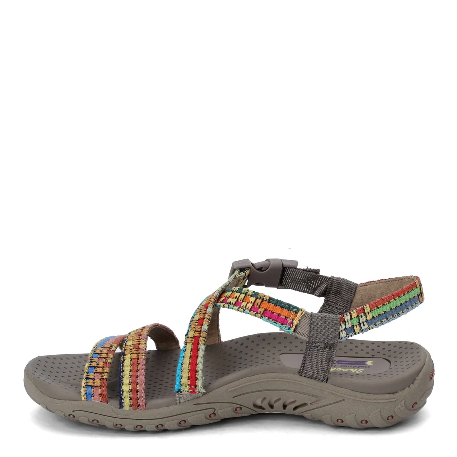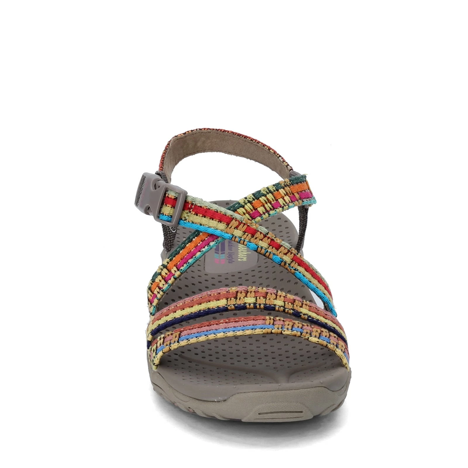 Women’s Skechers, Reggae – Sew Me Sandal. Weave into the warm weather with these colorful sandals. These fun sporty sandals have a soft woven boho style color block design that will look great with almost any outfit.