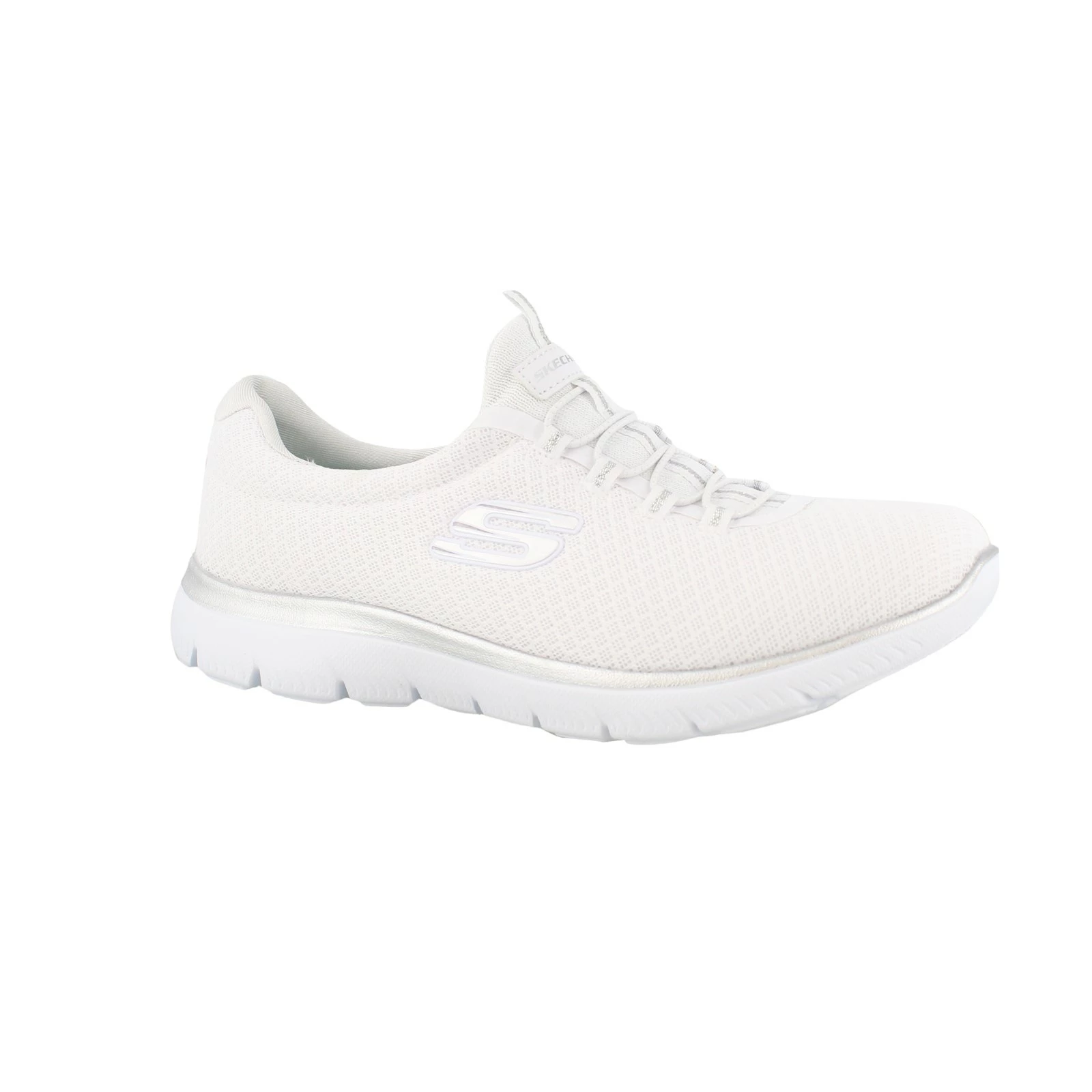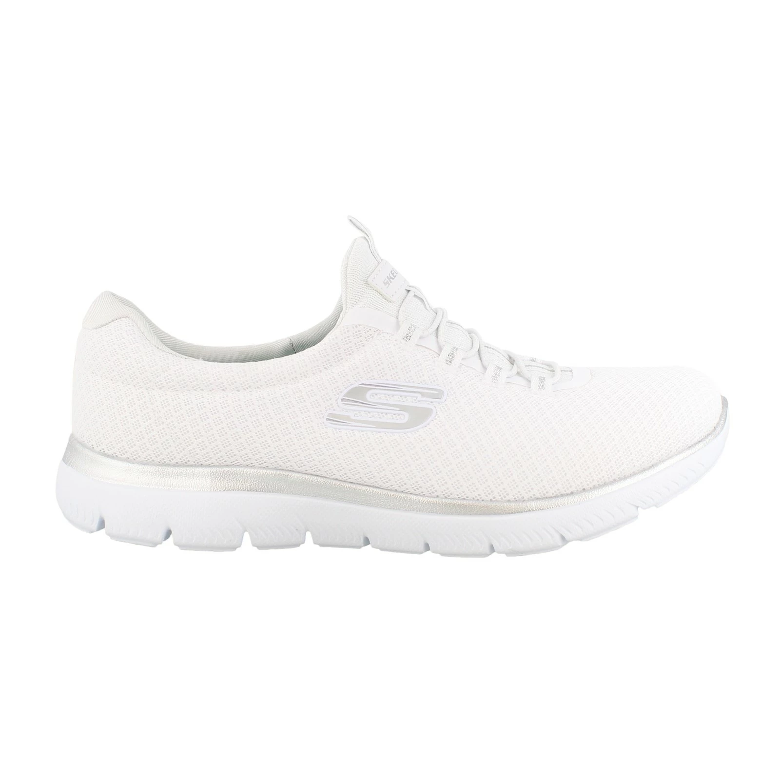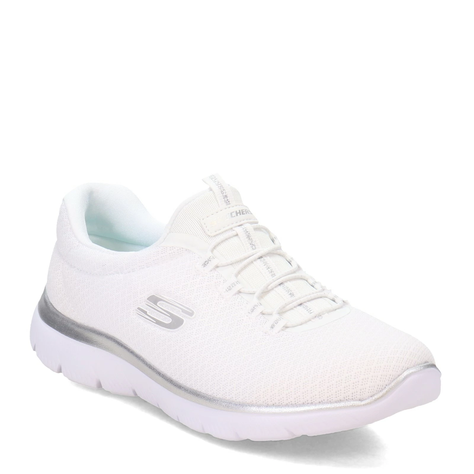 Women’s Skechers, Summits Sneaker. Reach a new height of sporty comfort. This slip-on trainer features stability knit mesh panels, padded collar, and tongue for added comfort.